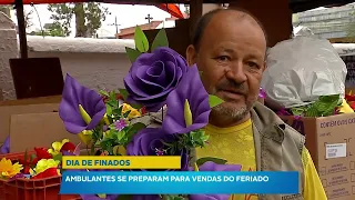 Após a limpeza e manuntenção dos cemitérios, os vendedores ambulantes já começam a se organizar. A movimentação é intensa na frente de um dos principais cemitérios públicos da cidade.