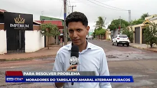 Na região norte de Campo Grande, a buraqueira virou problema diário. Cansados de esperar solução, moradores colocam entulho nos buracos para facilitar a passagem e reduzir transtornos no bairro.