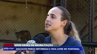 Sete macacos-prego, que passaram por reabilitação no Centro de Reabilitação de Animais Silvestres (CRAS), foram reintegrados ao habitat natural em uma reserva no Pantanal. A maioria dos animais foram vítimas de tráfico, receberam cuidados veterinários e treinamento de readaptação antes da soltura.