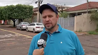 A fiação está na calçada há pelo menos três meses e causa transtornos. Um dos incômodos é que impede a passagem do morador pelo portão da casa.